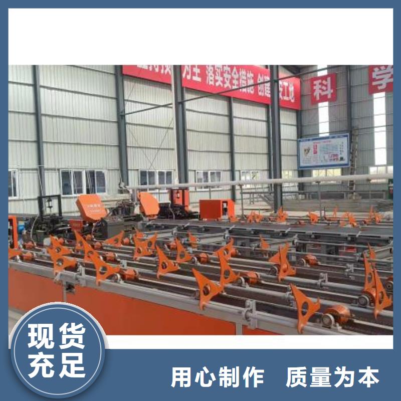 河南建贸机械设备有限公司专业生产销售数控钢筋笼滚焊机、钢筋锯切套丝生产线、钢筋剪切线、弯曲中心机、弯箍机等设备。我们只做优质产品 保证工程顺利工作。服务到位您给我们一份信任,我们给你一个满意的产品。数控钢筋锯切套丝生产线设备是我公司对国内螺纹钢筋的链接,整体结合国际技术,自主研发的集电气、液压、气动、为一体全自动化科技产品,具有国际水平,可自动完成钢筋直径12-50mm,强度HRB335/400/500的锯切,具有切削效率高、自动定尺、节能省料、操作简单等特点。 设备特点:钢筋锯切生产线原料存储架采用大吨位存储,并可以与棒材自动上料机配合使用,实际上一个循环尚未结束时即可进行下一步配料,以节省循环周期,全自动送料轨道,避免原料的二次搬运。钢筋的输送、翻转、传递等全部由机械完成,大幅度提高了率,钢筋输送滚采用V型耐磨辊进行,达到了耐磨、减噪音、寿命等特点,缩径、滚丝主机头实现了自动夹紧、送进、缩径、滚丝等功效。