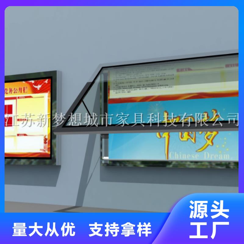我厂专业生产公交候车亭制作/站台灯箱制作/广告灯箱等系列产品,江苏新梦想家具有限公司是公交候车亭|公交站台灯箱|阅报栏|金属灯箱/指路牌灯箱等城市家具综合制造商,我们所生产的温州永嘉新款公交候车亭是为方便乘客候车时遮阳、防雨等,在车站、道路两旁或绿化带建设的交通设施.产品主要特点:设计简单,大方,制作成本低,外观精美,造价便宜,特别适合乡镇,农村公交候车亭。温州永嘉滚动灯箱生产厂商-我厂为您提供20种系列,80多种滚动灯箱款式,大批量,低价格是我们的经营理念,欢迎全国各地新老客户选购我厂生产的候车亭,公交站台,阅报栏灯箱,路名牌、垃圾箱、景观灯箱等系列产品。欢迎联系我们!